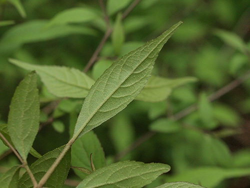 | 特徴など:ヤナギのようなやや幅のある細長い葉のムラサキシキブの仲間。葉の裏はやや白っぽい。(写真:台湾) |